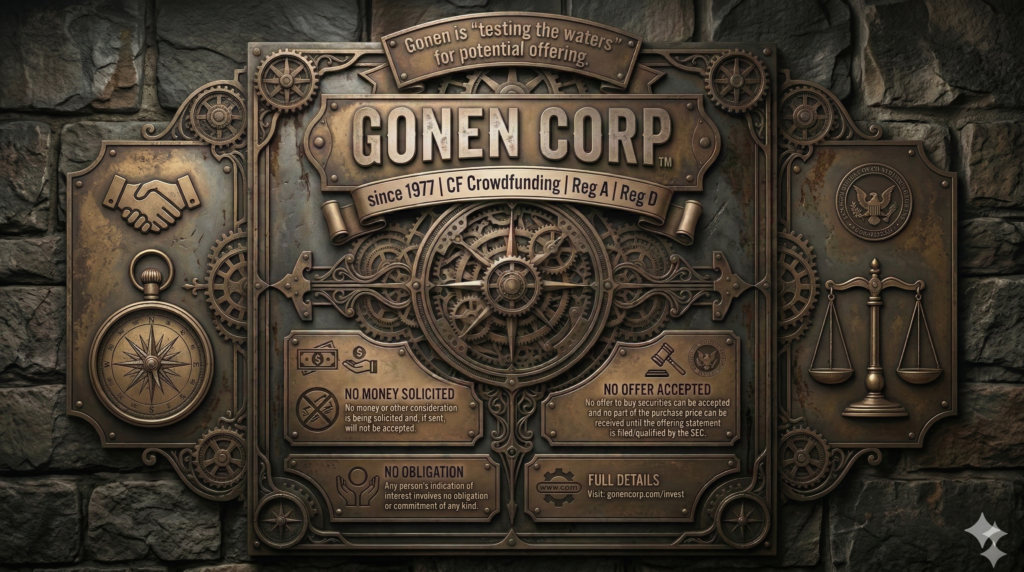 Founded in 1977, GONEN CORP™ is a global enterprise with a diversified portfolio spanning Building, Media, Real Estate, Technology, and Marketplace sectors. With a long-standing history of innovation, the company is committed to delivering sustainable, forward-thinking solutions that drive positive change and create lasting value.