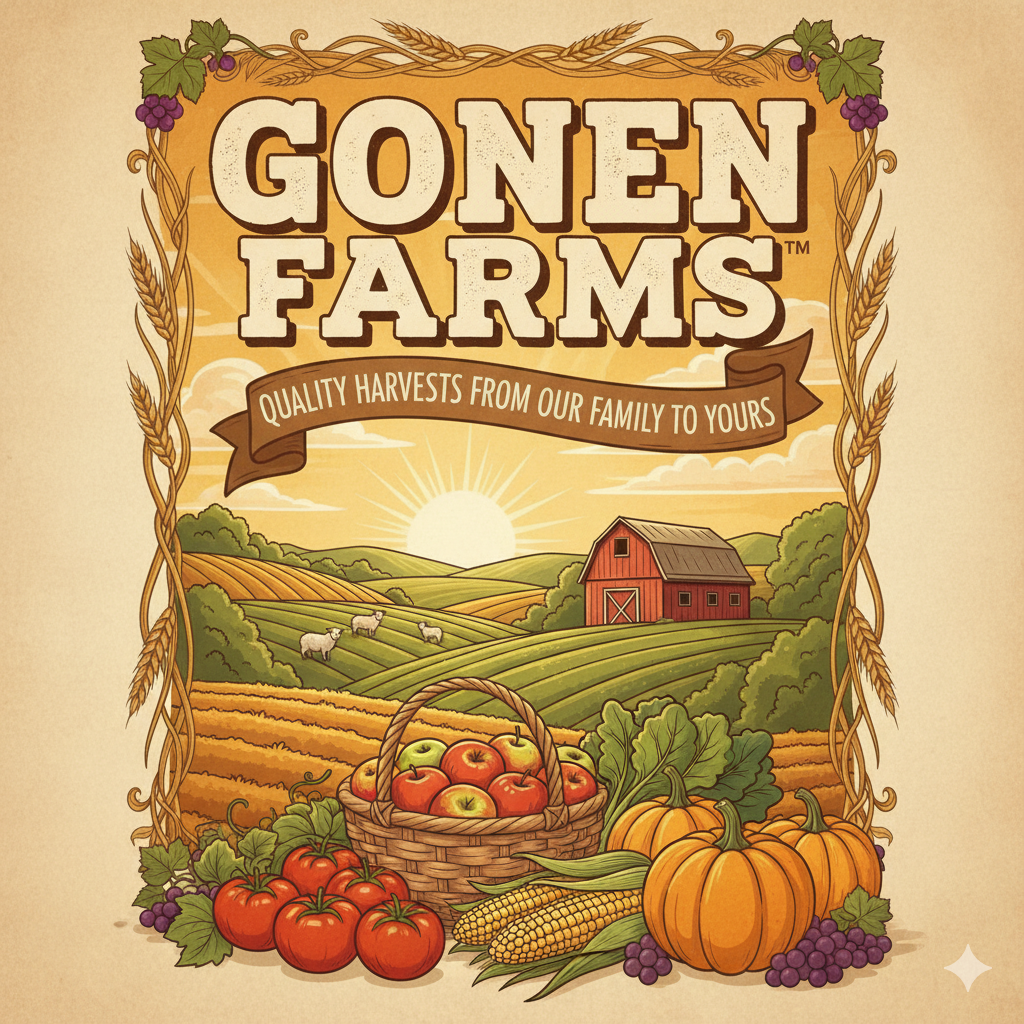 GONEN FARMS operations is based on the context provided: Water and Dirt Farmers, 4th Generation, supplying local hometowns with online ordering and same-day pickup.